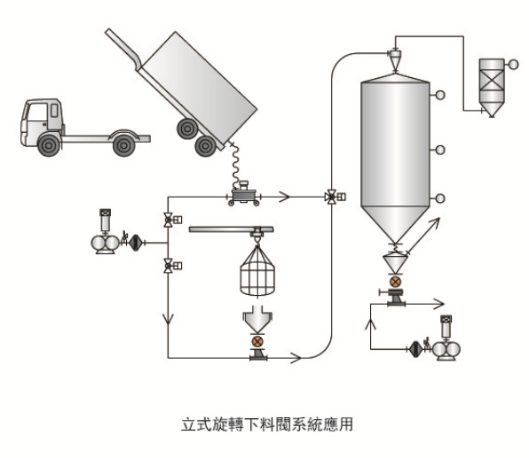立式旋轉下料閥可以直接從集裝車箱接收原料(顆粒),通過空氣輸送到儲料桶,是設計最優良的定量供給機。