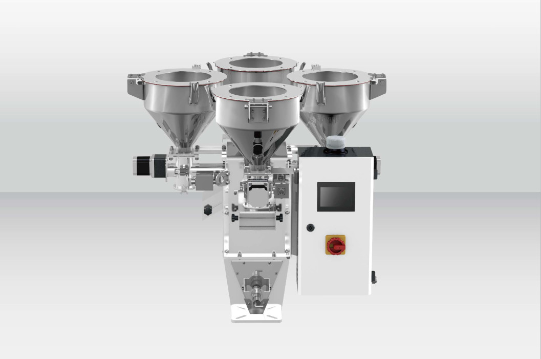 SPM系列容積式比例混合機適用於新料、次料、色母或添加劑等的自動比例混合。