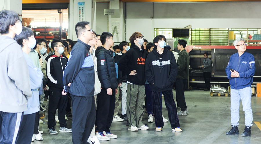 当天,在该校系主任陈尚彦的组织下众师生满怀期待到来,阙壮怀协理以“智能制造在装配制造业的实践与探索”为题向同学们介绍了信易集团迈向智能制造的现状以及面临的挑战,并将每一个生产制作部门都进行了详尽的介绍和讲解。随后,带领同学们参观了工厂。