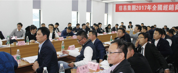 會議上半程安排了信易集團各分公司業績報告、經銷商經驗分享及探討環節。各分公司的業務主管分別就2017年度的業績進行檢討報告,並提出了2018年度的業績目標及年度計畫。在經銷商經驗分享及探討環節,各經銷商就各自業績進行分享,並針對自身在銷售活動中存在的問題與公司進行了溝通,提出了富有針對性的改善建議。