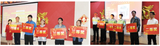 報告結束後,首先開始頒發2017年業績達成獎金,當成捆的獎金首搬上舞臺,現場發出一陣陣歡呼,將氣氛直接推向一個小高潮。香噴噴的菜肴也在這時由工作人員流水般地送上桌來,斟上醇香的美酒,同仁們開始推杯換盞,互道祝福,個個喜笑顏開。伴隨著歡快的音樂,一輪一輪的抽獎活動逐漸展開。今年的抽獎一改往年抽獎簽的方式,直接採用時下流行的電腦抽獎,當中獎的名單定格在大螢幕上,當主持人大聲念出中獎同仁的工號及名字,中獎的同仁高舉著手,大聲應答著高興地沖上舞臺領獎,同仁們則報以祝賀的掌聲。幾輪抽獎過後,更有同仁現場上臺,即性為全體同仁表演歌曲。幾首歌曲之後,又陸續抽出當晚設置的其他獎項,當特等獎的電冰箱抽出,中獎同仁現場上臺領獎時,臉上滿滿的全是笑意,台下是同仁們熱烈的祝賀掌聲。