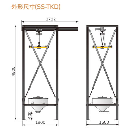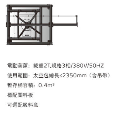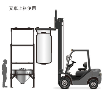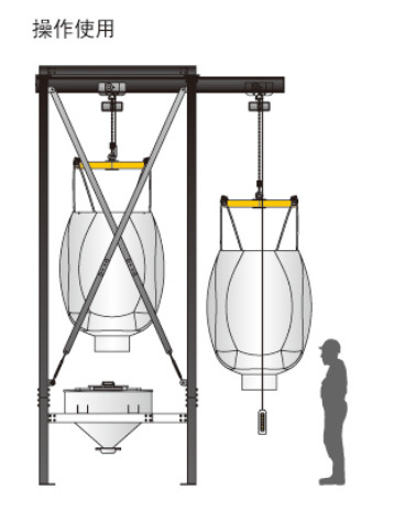 太空包下料站應用於工廠對噸包袋物料的卸料與輸送;操作簡單,底部可配置安裝吸料盒,用於產線供料或料倉加料;亦可選配安裝旋轉下料閥與加速室,用於大型料倉的上料。