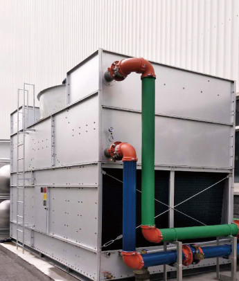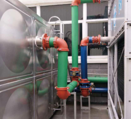 在室外配備一台冷卻水塔和一個水箱,冷卻水塔和水箱並排放置,通過鍍鋅管連接。車間回水先經過冷卻水塔,冷卻後進入水箱,存儲起來。