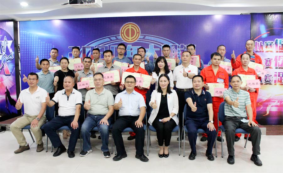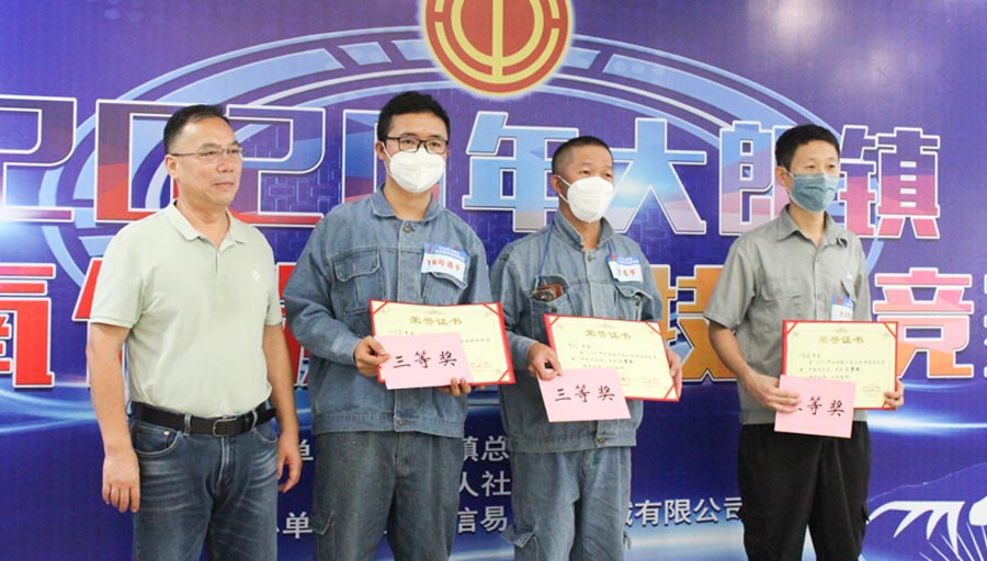 长达3个多小时的激烈比拼终于迎来激动人心的颁奖时刻!市总工会副主席何志雄,镇人大主席、镇总工会主席陈慧娟,市总工会劳保部部长邱建国,镇总工会专职副主席邓思强,大朗人社分局局长卢俊钊等领导与我司赵婕菱协理、灍壮怀协理、易道江经理共同出席颁奖会。本次技能竞赛角逐出一、二、三等奖和优胜奖共14人,其中我司陈敏荣获二等奖,王培拿荣获三等奖,张新全、张厚根、陶鹏三人荣获优胜奖,由市镇领导颁发荣誉证书及奖金并与获奖选手合影留念,本次竞赛于上午11时40分完满结束!
