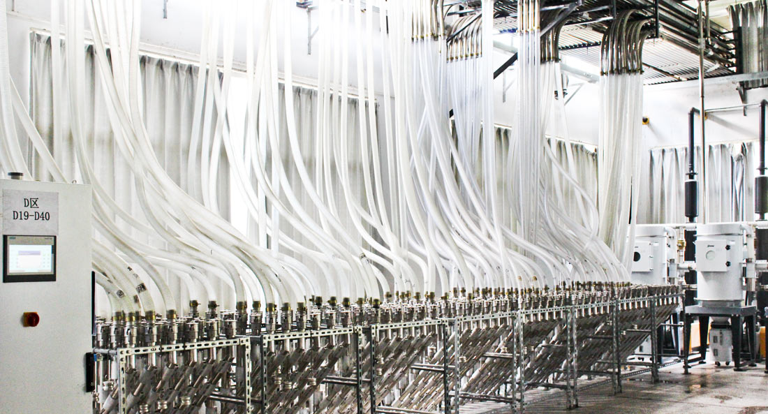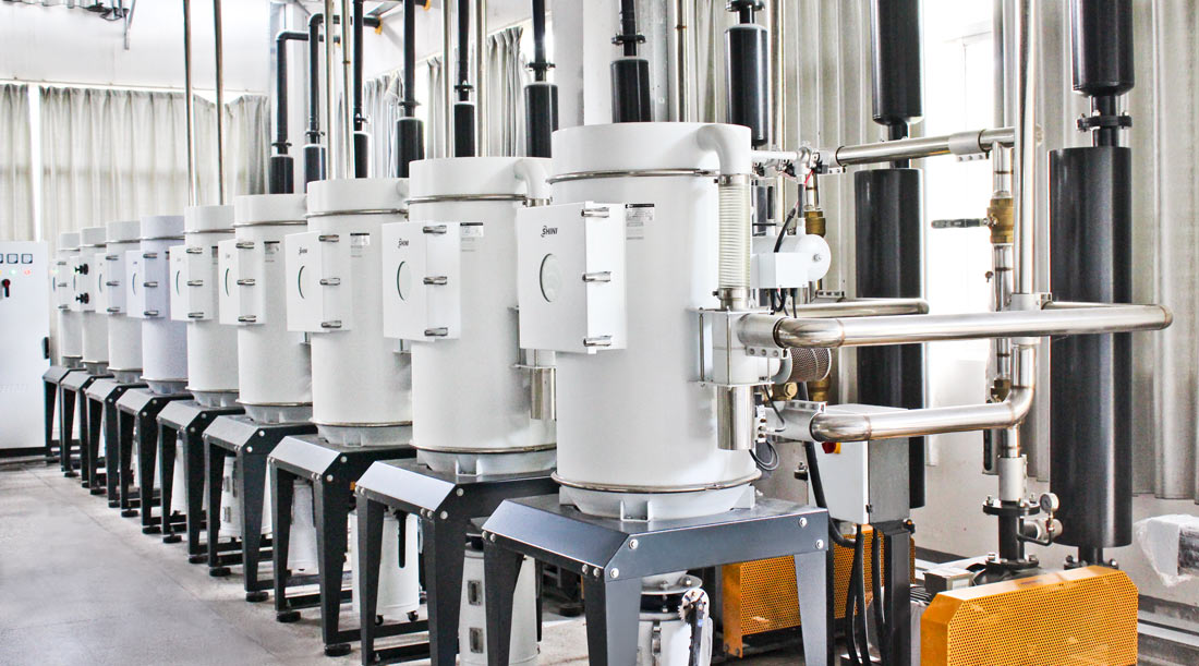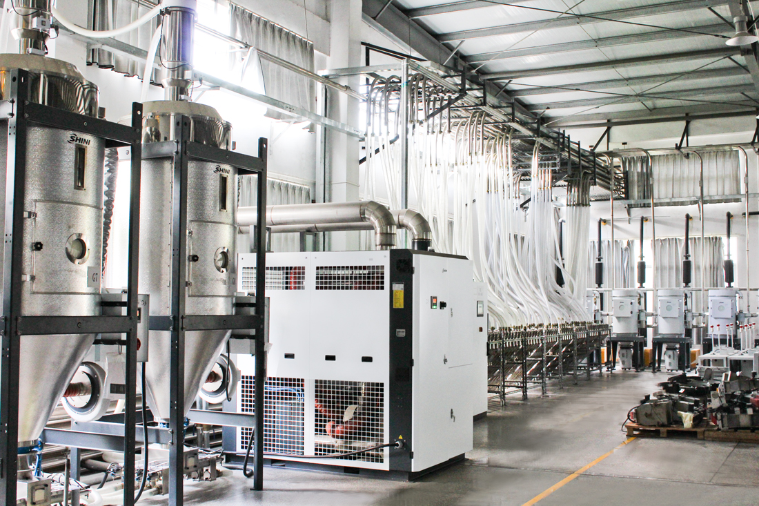 依托于信易智能注塑工厂方案的平台架构,信易融合中央供料系统、除湿干燥、色母机等系统及设备,预留未来工厂进行数字化发展的扩展性,将所有管路架空铺设、使得设备整齐、布局简洁,帮助客户全面提高生产效率、改善车间环境、解决生产问题。