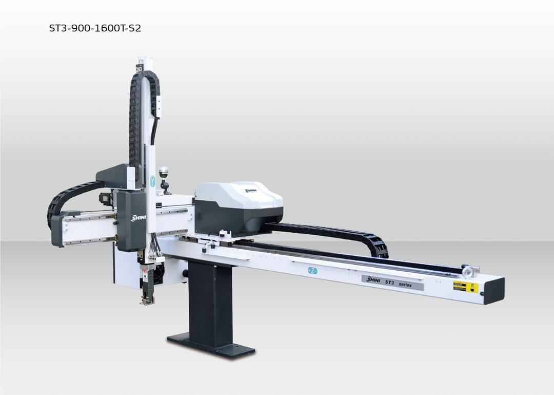 除此之外,横走式三轴伺服机械手符合工业4.0规范,能实现各种特殊动作,如排列、堆放、品检和埋入等。适用于锁模力在3600T以下的射出成型机。