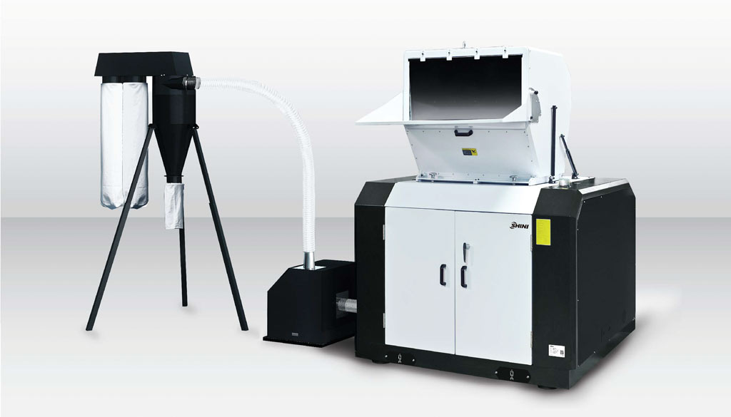 为满足用户对于塑料循环回收工艺的各种差异性的需求,信易开发并制造了各种类型的粉碎回收设备,这些设备大多数以SG命名,主要用于粉碎各种塑胶材料,包括注射成型、吹塑成型或挤出成型后产生废料的粉碎回收再次利用。目前,SG系列塑料粉碎机的主要产品包括:慢速机边粉碎机SG-16N/SG-20N系列、齿啃式粉碎机SG-14/SG-24N/SG-24T/SG-24EB系列、静音集中粉碎机SG-23/SG-30/SG-36/SG-43/SG-50/SG-70系列、滚转式片材粉碎机SGF-26系列等;其中,慢速机边粉碎机SG-16N/SG-20N系列、齿啃式粉碎机SG-14/SG-24N/SG-24T/SG-24EB系列可以放置于注塑机旁将机边水口料或少量不良的粉碎立即回收再次利用,操作简单,使用方便,是注塑行业中的必配设备,并可搭配机械手或取出机一并使用;静音集中粉碎机SG-23/SG-30/SG-36/SG-43/SG-50/SG-70系列可以放置于单独粉碎室房间内对废料进行集中粉碎,静音集中粉碎机机器型号多,应用范围广,可满足客户不同的粉碎要求;滚转式片材粉碎机SGF-26系列可对各种塑胶边料、片材的粉碎再利用。SG系列塑料粉碎机产品在粉碎过程中不可避免会产生粉尘,导致车间的粉尘大,影响人身健康和环境污染,因此在给粉碎机选型时配套再选装一套粉尘分离系统DS,能有效分离粉碎料中绝大部分的粉尘,将粉尘收集在集尘布袋中,可大大降低粉尘对车间环境的污染,解决粉尘过大的问题。