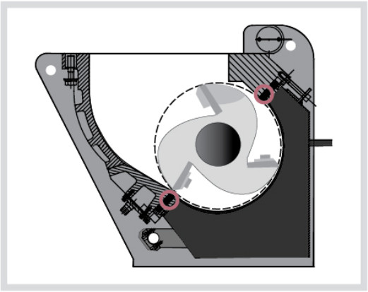 大型粉碎机的结构依据其使用的工况,分为多种不同的配置,适用于粉碎各种大型或厚壁塑料制品,包括注射成型、吹塑成型或挤压成型后产生的废料,实现集中粉碎,回收再利用。根据待粉碎料物的形状、材质、尺寸等,粉碎机的刀具结构可以做适当的调整,例如空壳类的大体积塑料制品,可以减少刀具的排数,以增加粉碎室的有效空间,便于刀具抓取并粉碎制品;对于实心厚壁材料,则可以增加刀具排数,提升单位时间内刀具的切割效率,提升粉碎产能。