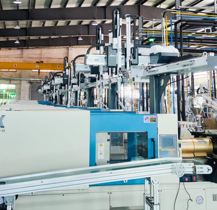 广东某机电有限公司,主要生产和销售电动工具、家电产品、五金工具、空气压缩机、气动工具、庭园工具、烤肉炉、排油烟机、环保家电产品、各类机械设备及电子元器件。该公司于2021年与信易自动化部门合作,向信易订购了ST3/ST5中小型横走式机械手,用于塑料件的全自动注塑成型。设备投入使用后,机械手操作稳定,与注塑机的周期配合统一,生产效率及质量提高明显,客户非常满意。