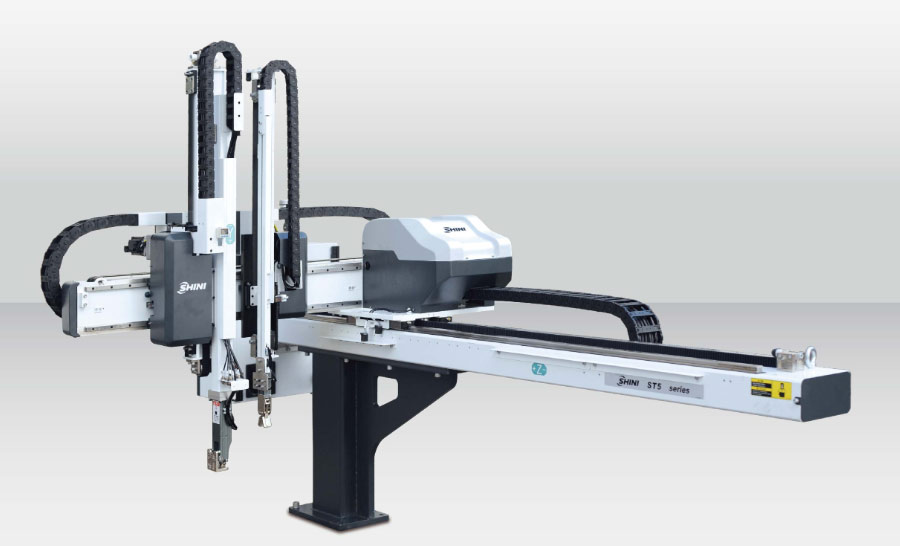 横走式三轴/五轴伺服机械手系列主要用于注塑成型时成品及水口料的取出。分为单臂式与双臂式供客户选择,以适用于二板模、三板模或热流道模具。符合工业4.0规范,能实现各种特殊动作,如排列、堆放、品检和埋入等。适用于锁模力在3600T以下的射出成型机。